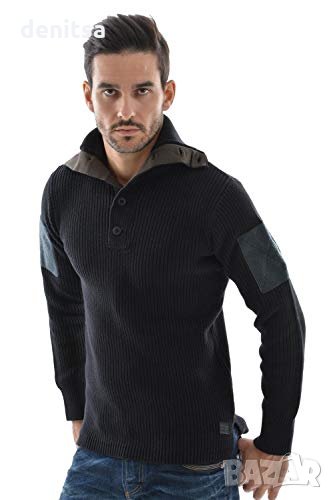 Без следи от употреба, висока поло яка, която се разкопчава. Милитъри визия в цвят сиво зелен - Magma Green. Плътно, но разтегливо памучно плетиво.