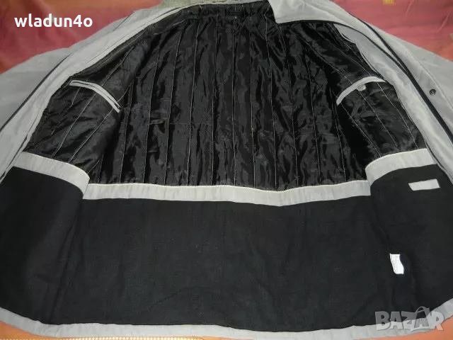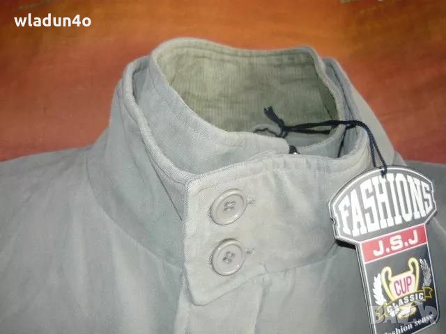 Якето ,манто ,палто -незнам точно как да го напиша е НОВО с етикета си е . Цвят сивкав; материята е много приятна на пипане Д-87см Ш-69см Ръкав измерен от врата-86см /от шева на рамото- 68см /подмишница-50см Има 2 външни джоба и 3 вътрешни Много хубава подплата ,която в долната част е по- топла за студеното време /черната част/ Особеното на този модел е, че : 1.могат да му се махат чрез ципчета кадифената втора вратна яка -т.е. има 2 яки 2.могат да му се махат двойните, тройните ципове при предното закопчаване /т.е. вътрешните ципове могат да се махат - а те са като доп. закопчаване освен най външното с копчетата -затова и така съм снимала -да се придобие представа как е . Но на живо е много по- ясно ,затова предпочитам лично да го предам за софийски клиенти