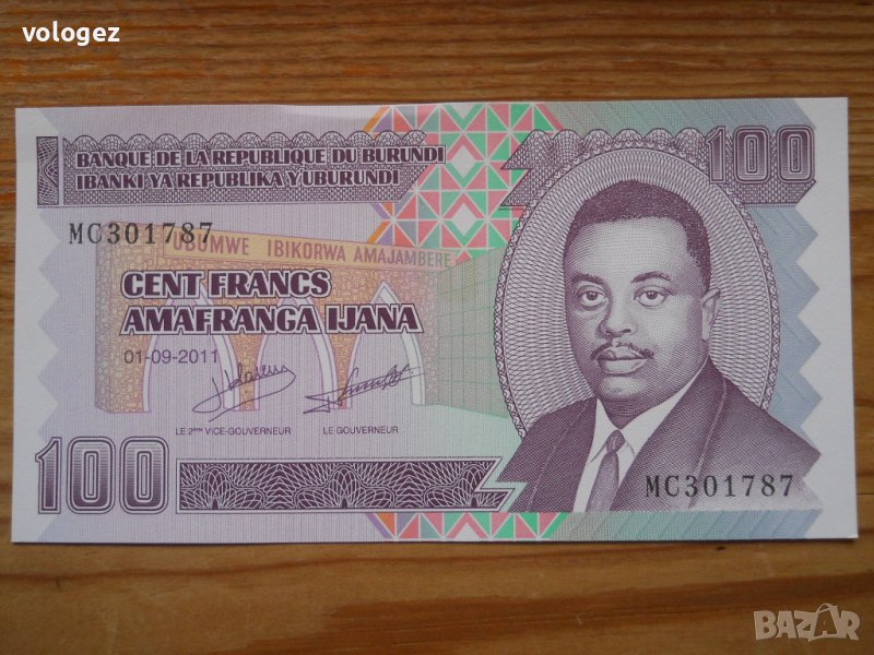 6. 100 франка 2011 г. - Бурунди - 1,02 € / 2 лв (UNC)