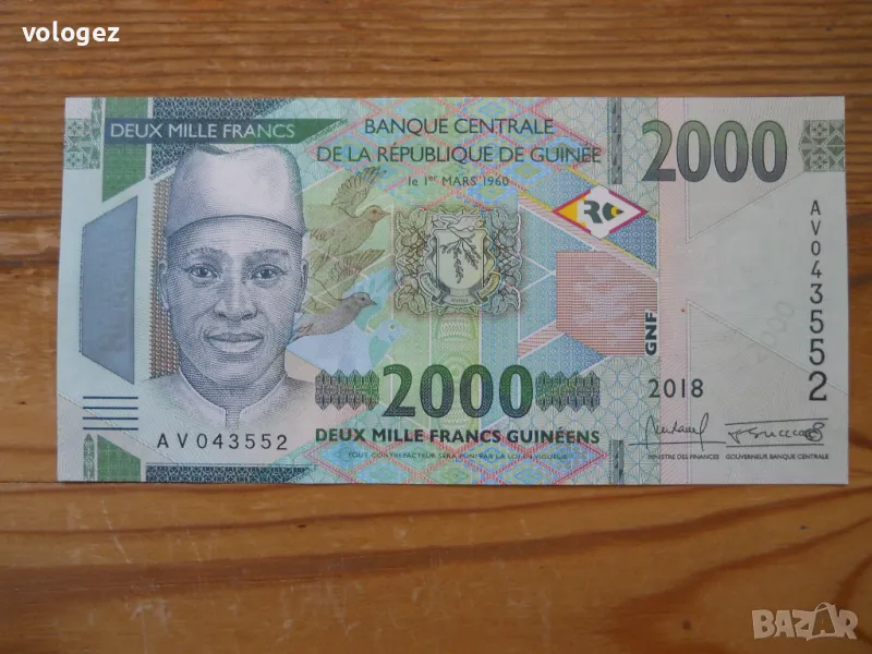 3. 2000 франка 2018 г - Гвинея - 4,60 € / 9 лв ( UNC )