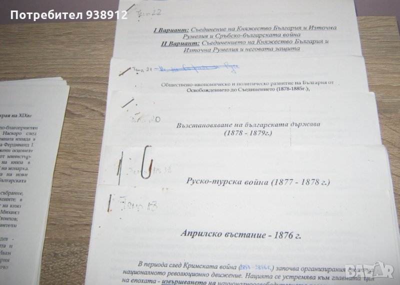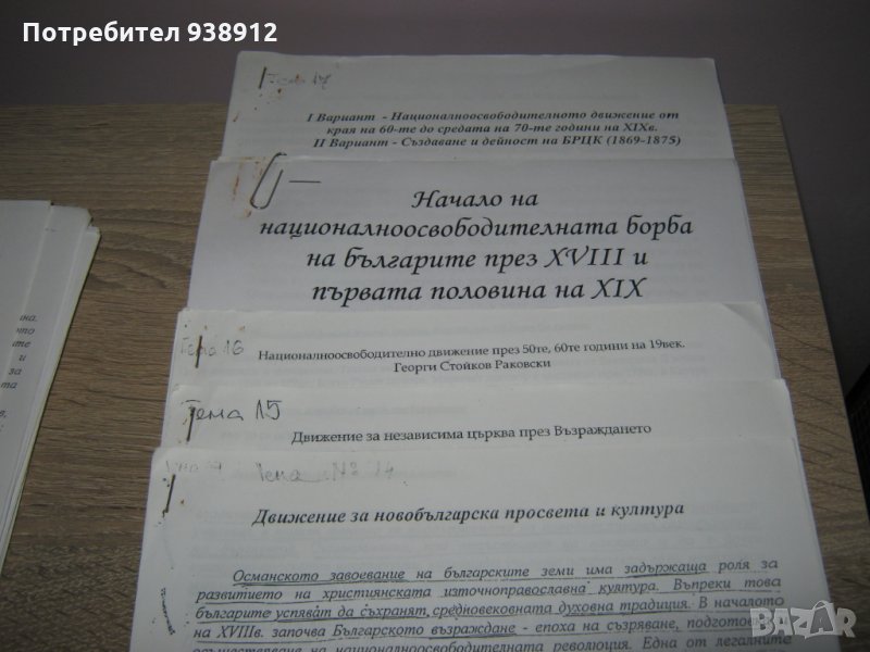 Темите са 29 броя. Разработени подробно със съдействието на учител по история и са използвани успешно за кандидатстване в няколко ВУЗ-а.