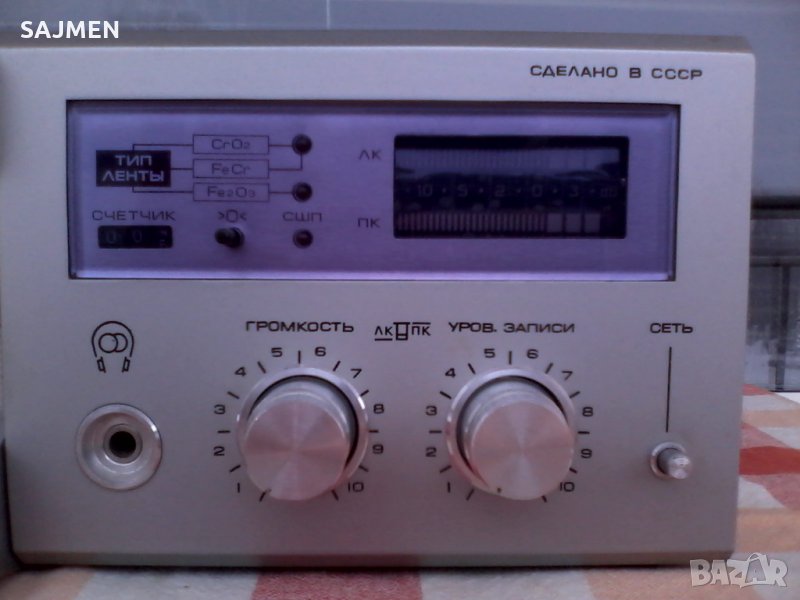записи/воспроизведения, световой индикатор режимов, трёхдекадный счетчик ленты.