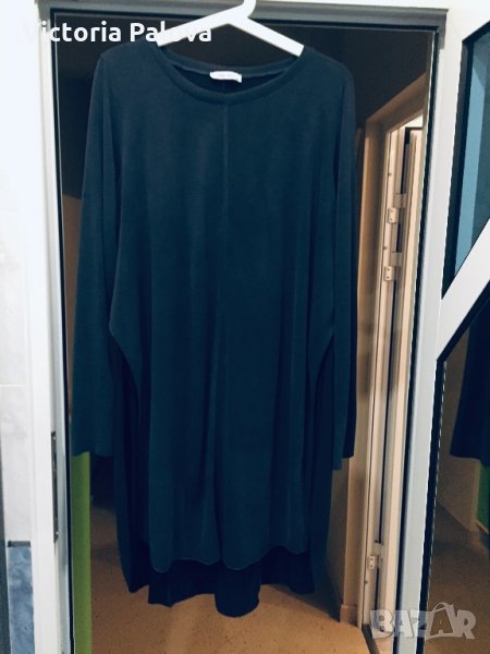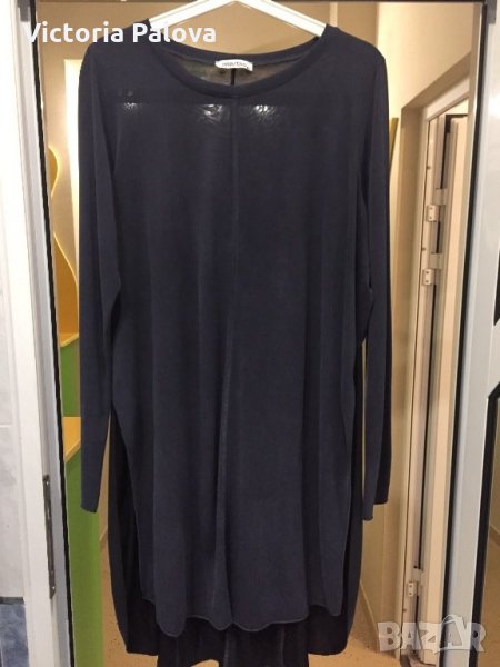 Цвят мокър бетон,цепки,материя,падаща красиво и тежко. от мишници от двете страни е отворена,има цепки,но те са с прехвърляне,не е прост разрез,и затова изглежда като рокля).широка е приблизително 62см(ГО),рамене-40-42см,дължината е 98-99см,като отпред е малко по-къса.материята е разтеглива,дрехата е свободна и много ефектна.