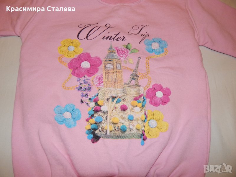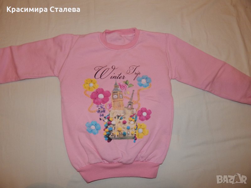 Ватираната розова блузка е с размери - рамене- 34,5 см., подмишници - 39 см., дължина - 51 см., дължина на ръкава от врата - 52 см.