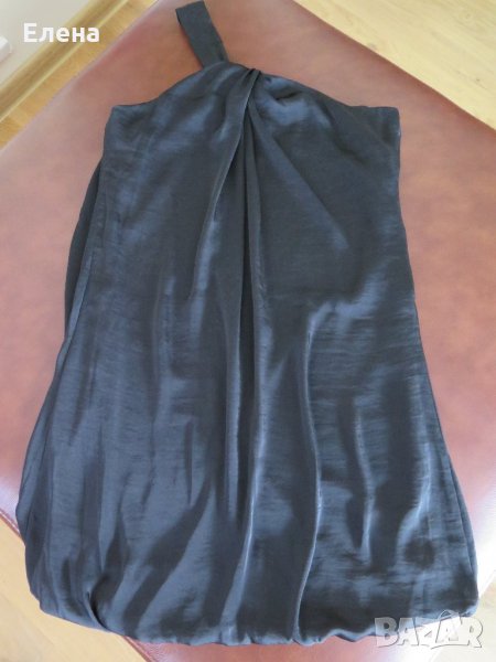Черна рокля тип балон с едно рамо на benetton. Плата на роклята е 100% полиестер има й подплата. Размери: дължина от подмишницата- 70см. Ширина подмишници- 47см., ширина талия- 54см. Ширина най-долу- 63см. Роклята е обличана 1 път за повод, в отлично състояние.