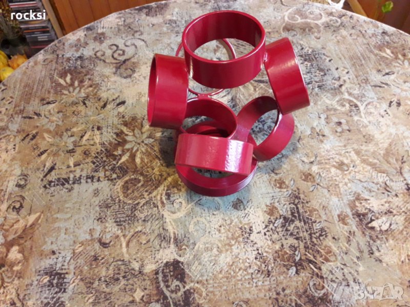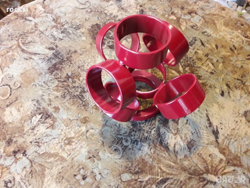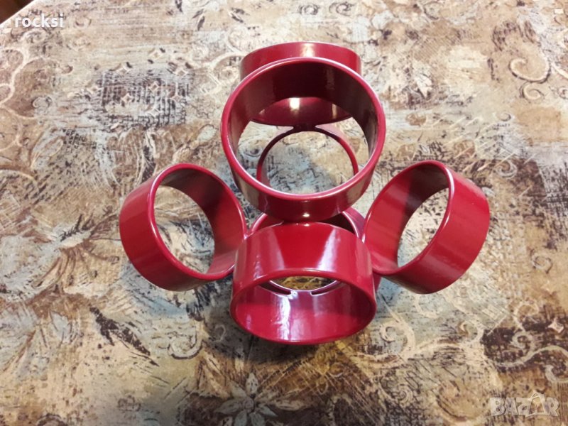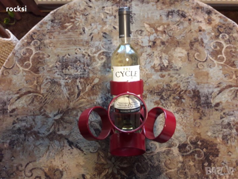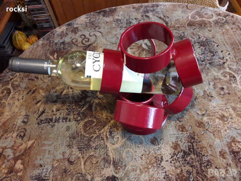Стойката е метална ,шишетата за вино могат да се поставят в различни позиции и отвори ,според вкуса на домакина.