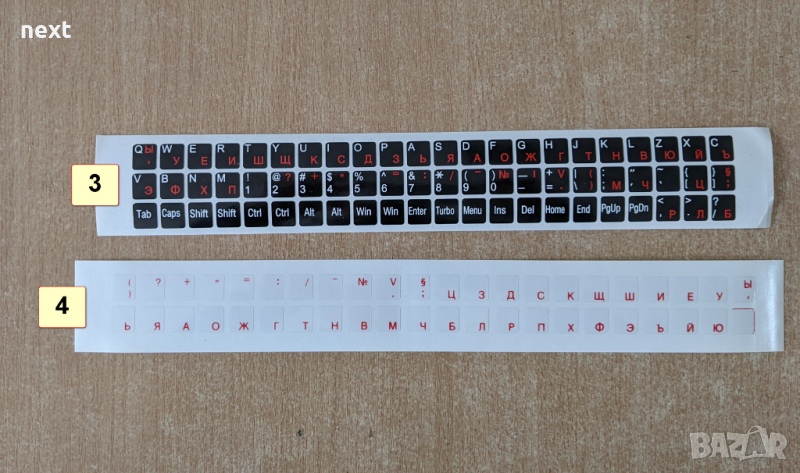 стикери) за нанасяне на буквите върху бутоните на клавиатурата.