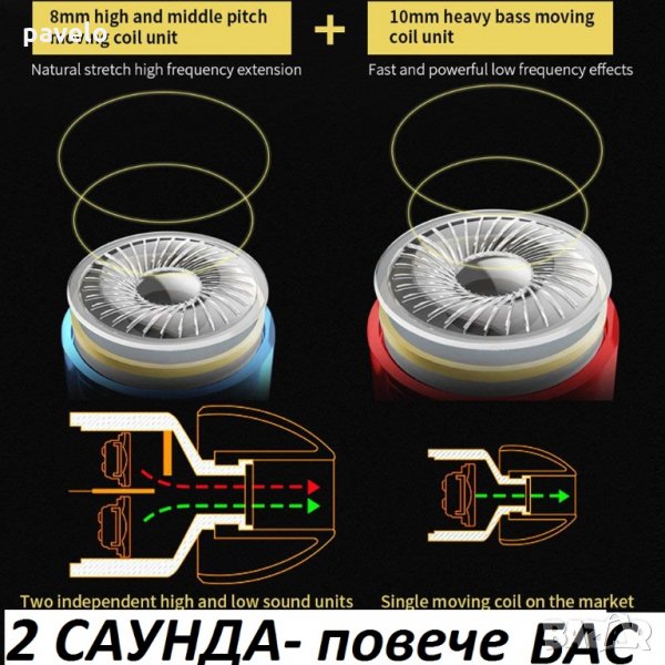 Качествен HI-FI- в диапазон 38-120dB с двоен динамичен бас.