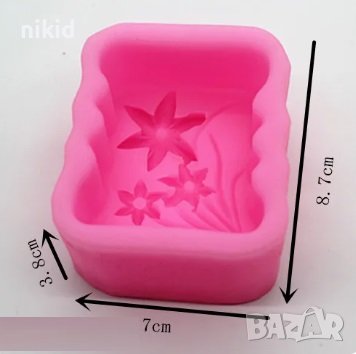 Правоъгълна дълбока форма с 3 цветя цвете и стъбла силиконов молд калъп гипс сапун шоколад и др. → Обява 23808588
