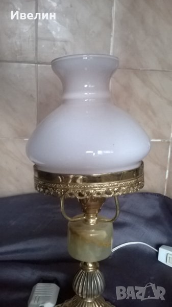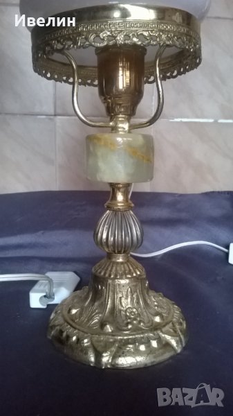 ретро нощна лампа.корпус от метал и оникс,забележка на стъклото/не се вижда като е поставено/.висока е 30см,изправна.