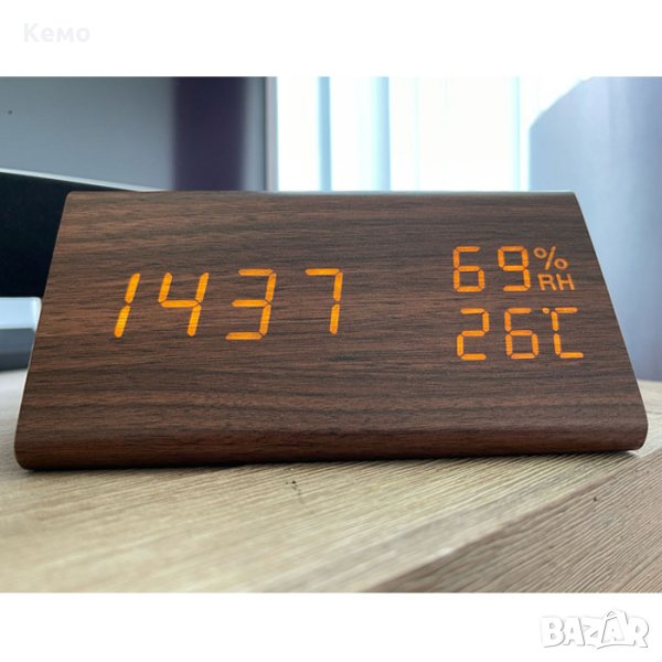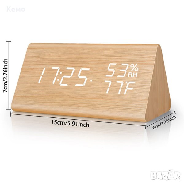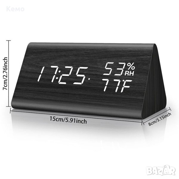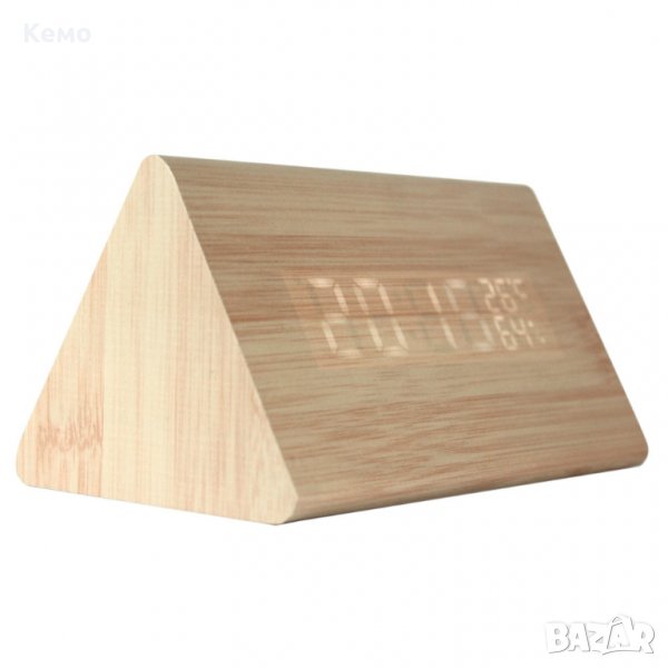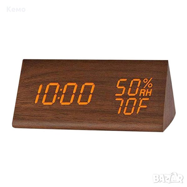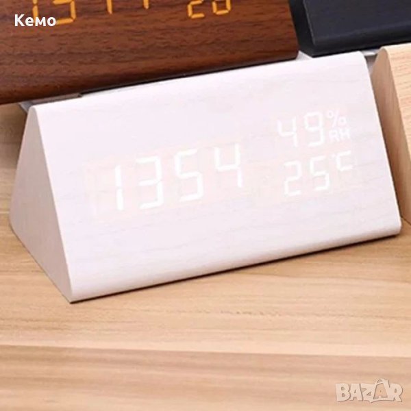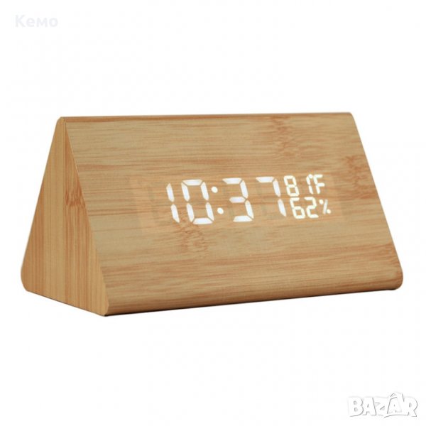 Красив с минималистичен дизайн и триъгълна форма този настолен часовник има всичко необходимо, като дата, температура, будилник и влагомер. Перфектен и много удобен за дома и офиса.