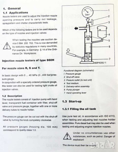 Използва се при измерване и настройване на налягане на отваряне на дюзи, при оценяване на струята на впръскване по форма и разпрашаване, при контролиране на плътността на дюзите, както и акустичните им свойства.