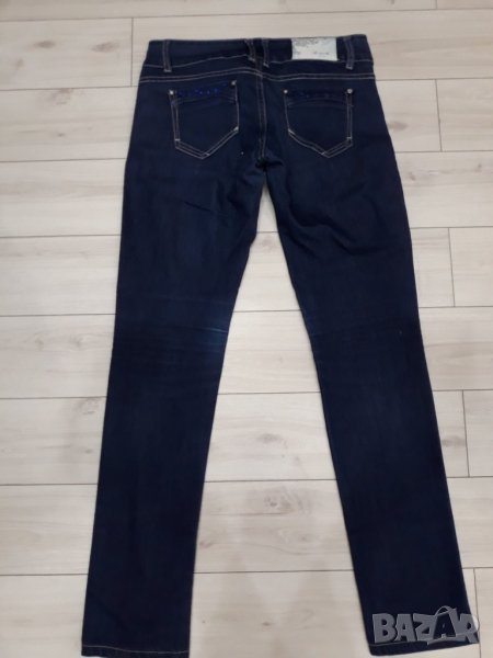 Тъмносини дамски дънки марка R.Marks със сини камъчета на джобовете → Обява 23815344