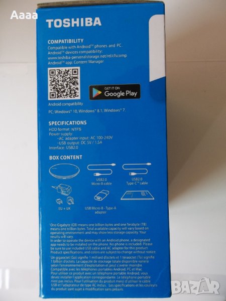 Toshiba външен HDD 2,5" 500GB Canvio for Smartphone HDWS105EW3AA външен хард диск, снимка 1 - Карти памет - 23815784 Toshiba външен HDD 2,5" 500GB Canvio for Smartphone HDWS105EW3AA външен хард диск, снимка 2 - Карти памет - 23815784 Toshiba външен HDD 2,5" 500GB Canvio for Smartphone HDWS105EW3AA външен хард диск, снимка 3 - Карти памет - 23815784 Toshiba външен HDD 2,5" 500GB Canvio for Smartphone HDWS105EW3AA външен хард диск, снимка 4 - Карти памет - 23815784 Toshiba външен HDD 2,5" 500GB Canvio for Smartphone HDWS105EW3AA външен хард диск, снимка 5 - Карти памет - 23815784 Toshiba външен HDD 2,5" 500GB Canvio for Smartphone HDWS105EW3AA външен хард диск, снимка 6 - Карти памет - 23815784 Toshiba външен HDD 2,5" 500GB Canvio for Smartphone HDWS105EW3AA външен хард диск, снимка 7 - Карти памет - 23815784 Toshiba външен HDD 2,5" 500GB Canvio for Smartphone HDWS105EW3AA външен хард диск, снимка 8 - Карти памет - 23815784 Toshiba външен HDD 2,5" 500GB Canvio for Smartphone HDWS105EW3AA външен хард диск, снимка 9 - Карти памет - 23815784 1/9