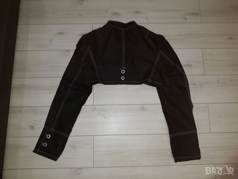 Черно дамско болеро с дълъг ръкав , дънков плат с бял шев, снимка 1 - Якета - 23815879 Черно дамско болеро с дълъг ръкав , дънков плат с бял шев, снимка 2 - Якета - 23815879 Черно дамско болеро с дълъг ръкав , дънков плат с бял шев, снимка 3 - Якета - 23815879 1/3