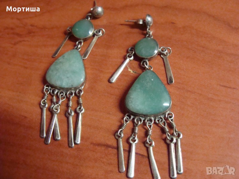 Авторски сребърни обеци с натурален авантюрин → Обява 23822169