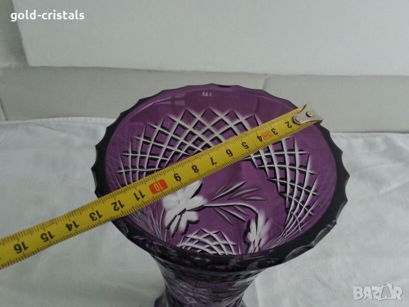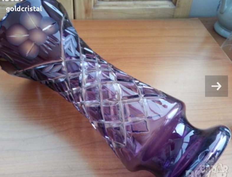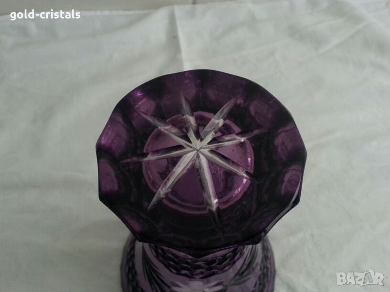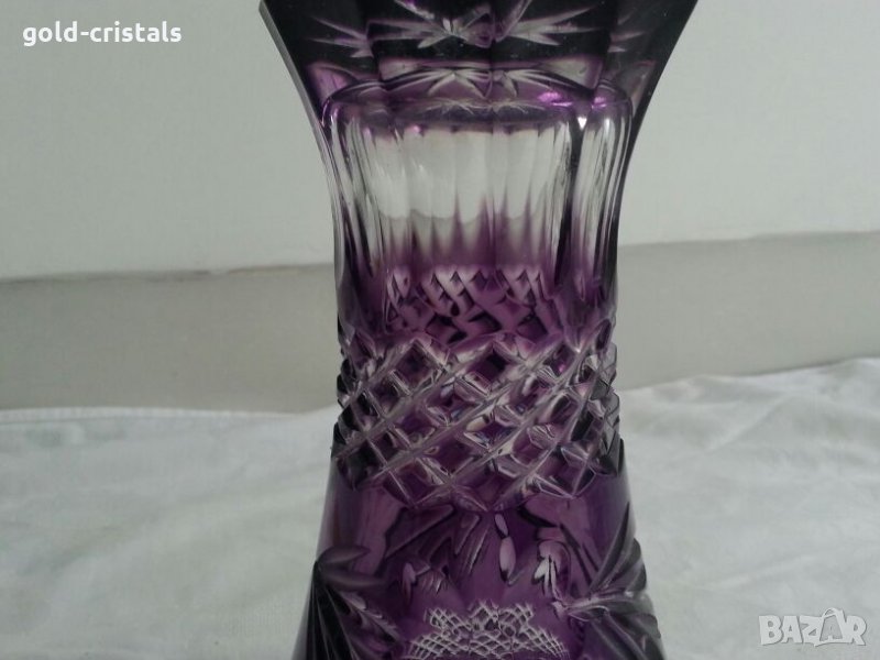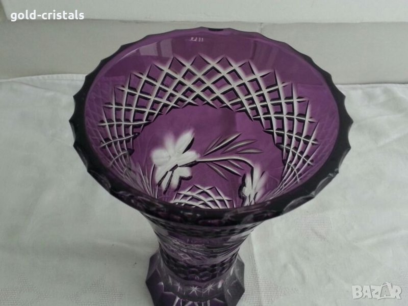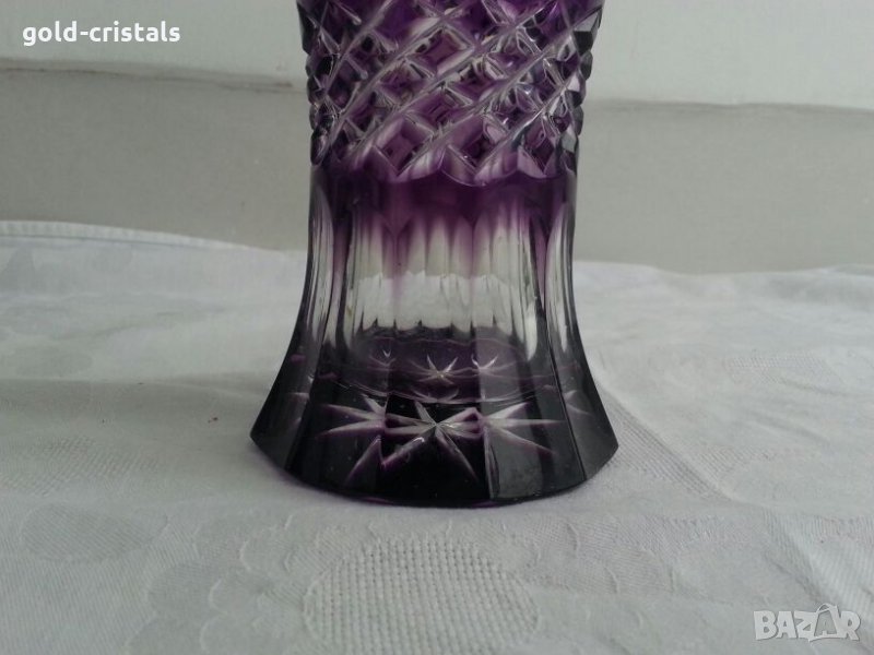 Кристална ваза цветен кристал масивен и тежък неизползвана без забележки кристално стъкло цветно лилаво стъкло гравиран кристал арт декор винтидж ретро колекция стари старинни антикварни предмети обзавеждане за дома и семейството 20см 180лв 30см 270лв подходящи за подарък за ценители и колекционери