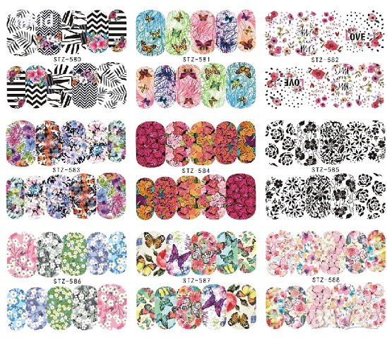 25 бр цветя и пеперуди ваденки слайдер водни стикери маникюр нокти → Обява 23822918