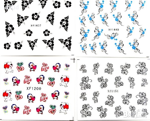 30 бр микс черни и цветя татос ваденки слайдер водни стикери маникюр нокти декорация → Обява 23822950