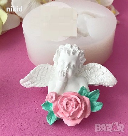 Ангел дете върху роза силиконов молд форма за декорация торта фондан шоколад гипс сапун → Обява 23826617