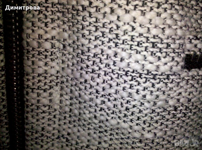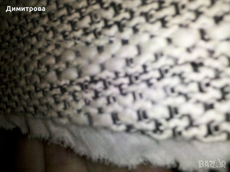 Релефна материята с памучна подплата и тънка памучна материя по краищата, фабрично разнищена, имитираща блузка отдолу.