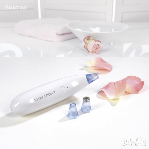 VITALmaxx уред за почистване на пори и премахване на черни точки C 3 приставки и 3,7 V акумулаторна батерия с УСБ зареждане. С приставка за микродермабразио.