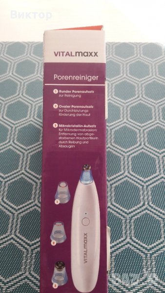 Повредената кожа и запушени пори- с този почистващ вакумен апарат от "VITALmaxx" сте намерили решение на проблема. Удобният инструмент за красота работи със специални приставки и създава вакуум върху кожата. Той премахва черните точки и мъртвите части на кожата. В допълнение, "VITALmaxx" има микрокристална приставка за почистван- микроабразио за порите на кожата. Открийте този 2-ефективен инструмент за красота - допълнителна грижа за кожата сега за дома!