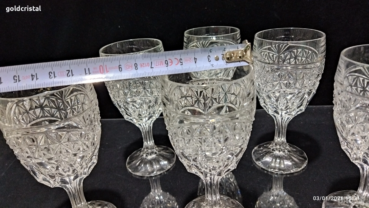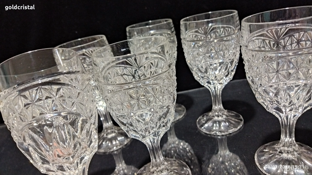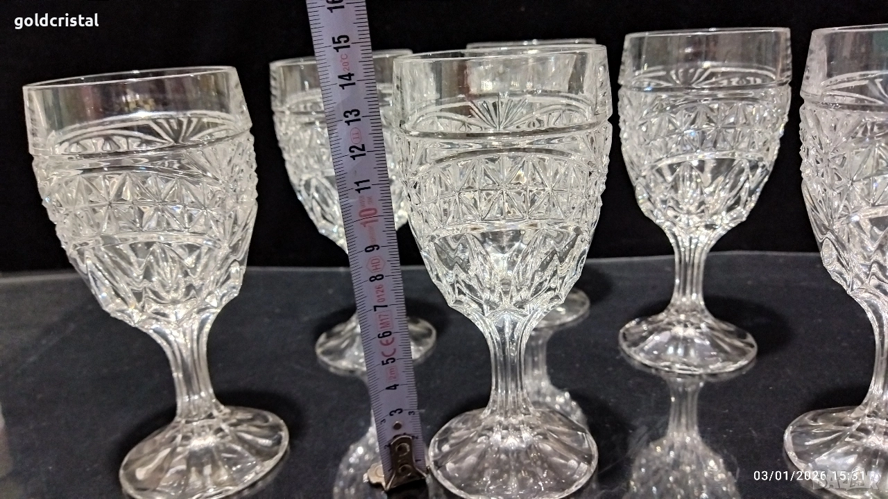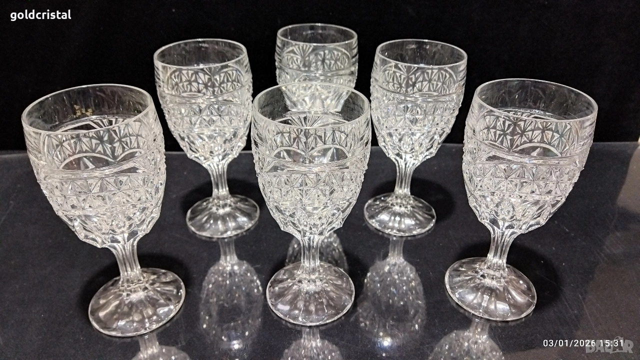кристални чаши за вино 6 бр -69€ има и гарафа 35€ масивен и тежък кристал без забележки сервиз комплект сет лот ретро арт декор винтидж колекция стари антикварни предмети обзавеждане за дома и семейството подходящи за подарък за ценители и колекционери