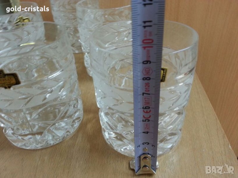 Сервиз кристални чаши за уиски 5 бр шеста подарък с забележкка с етикет масивни и тежки югославски кристал Зайчар кристално стъкло комплект сет лот ретро арт декор винтидж колекция стари старинни антикварни предмети обзавеждане за дома и семейството подходящи за подарък за ценители и колекционери