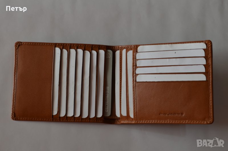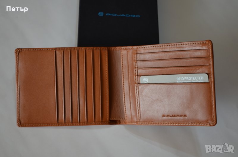 Портфейла е чисто нов и в оригиналната си кутия. На Италианската фирма Piquadro е и е хоризонтален тип. От серията CUBE е с номер на модела PU1241W88R/CU. Изработен е от висококачествена и допълнително третирана гладка кафява телешка кожа. Кожата е изключително мека и приятна на допир. Подплата от плат от вътрешната страна и в портфейла има допълнително поставен материал за RFID защита, предпазващ данните от безконтактните ви карти. Портфейла е хоризонтален тип и разполага с множество от отделения за карти или има общо: