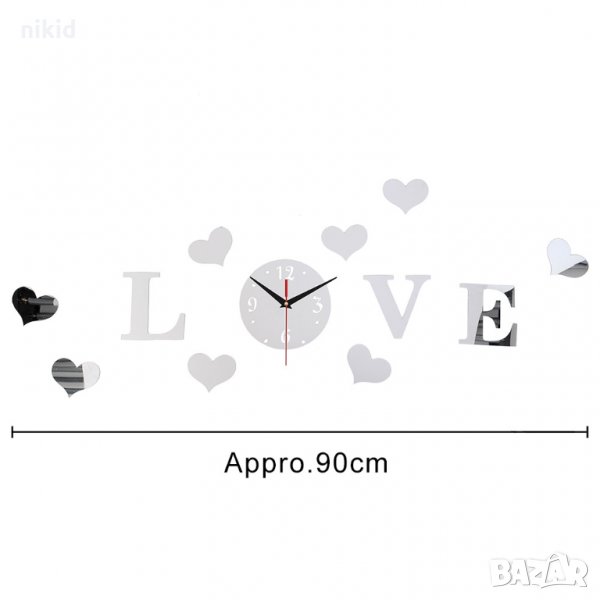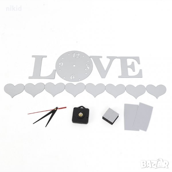 4 цвята 3D сърца LOVE самозалепващ огледален стенен часовник уникален атрактивен дизайн стена