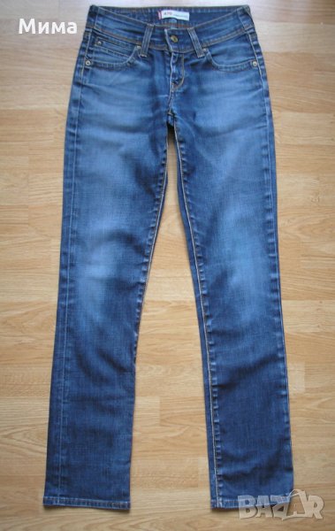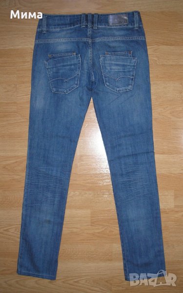 Дънките имат дължина 97 см., от чатала до долу 71 см., обиколка на ханша 114 см., а обиколката на талията е 83 см. Дънките почти не са носени, без забележка са.
