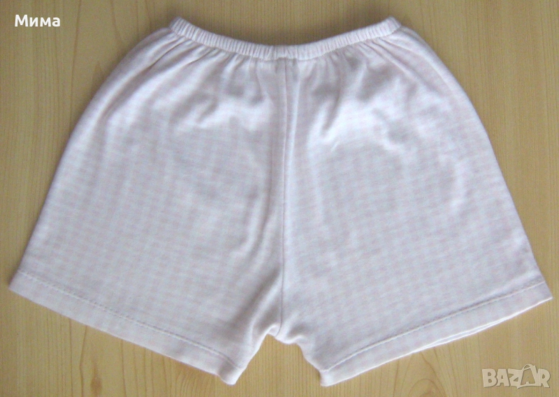 Материята е памук 100%. На талията има плетен ластик. Дължината от чатала до долу е 21 см, от колана до долу е 40 см, ханш 64см.