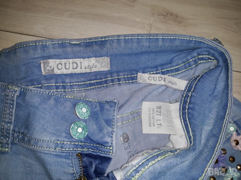 Продавам сини къси дънкови панталонки марка Cudi Style - с цветя и капси на предния джоб , без забележки ,внос от чужбина
