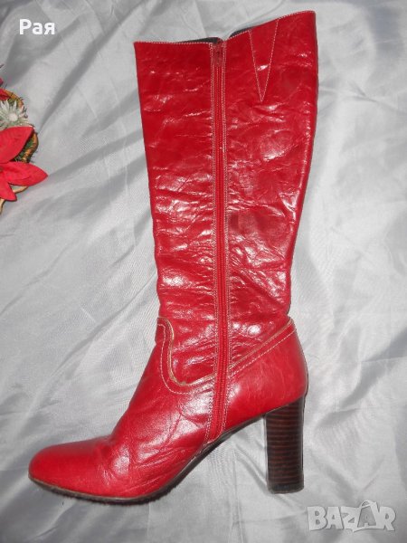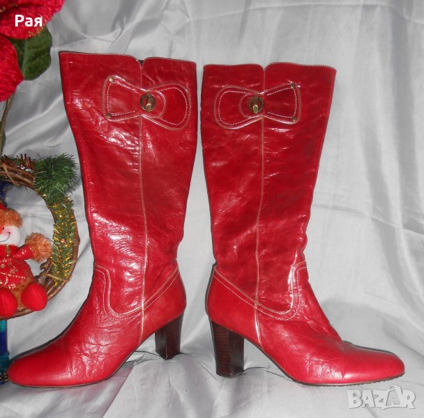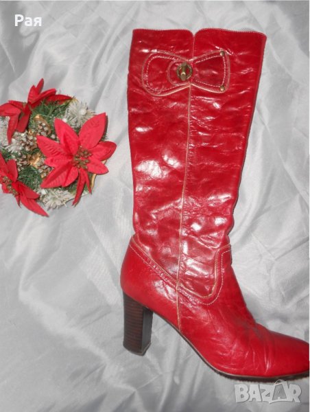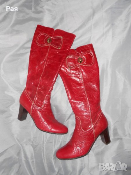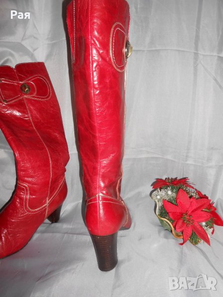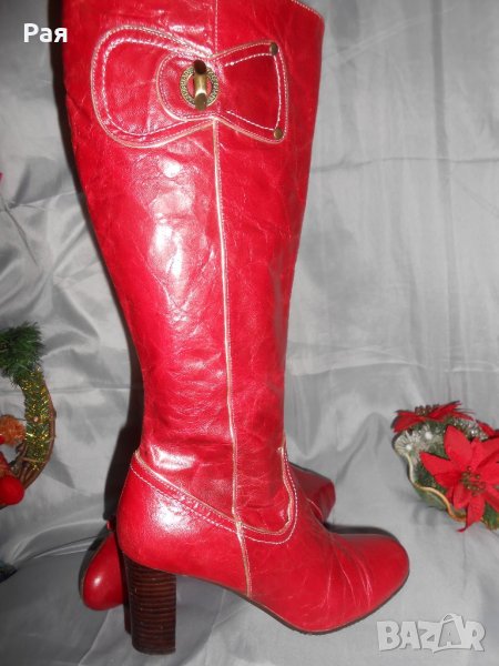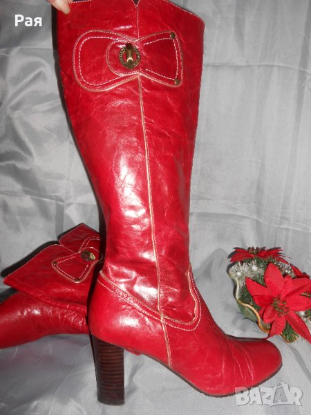 Елегантни кожени ботуши Fiorelli червени със златни елементи → Обява 23847632