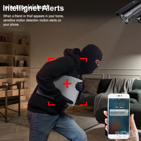 Поддържа мониторинг чрез компютър, IPhone и Android смартфони.
