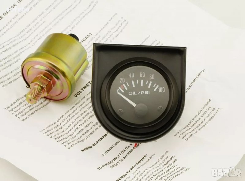 Измервателен уред тип VDO за налягане на маслото В БАРОВЕ със стойка ! 52мм с подсветка и датчик в комплекта
