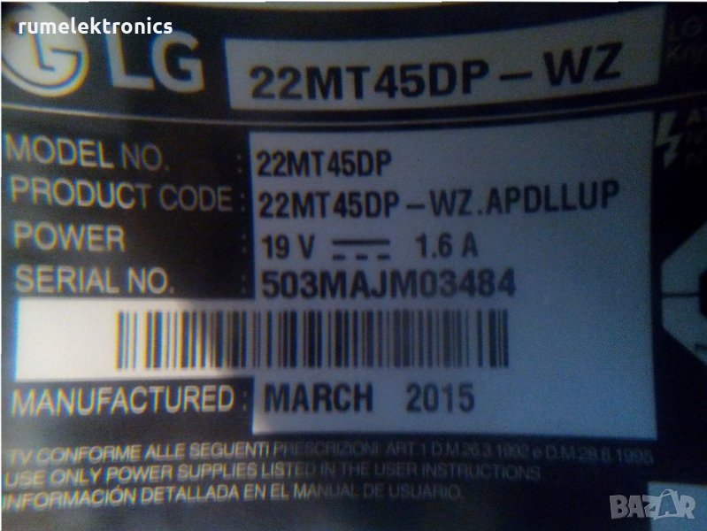 LG 22MT45DP-WZ на части, снимка 1 - Части и Платки - 23862382 LG 22MT45DP-WZ на части, снимка 2 - Части и Платки - 23862382 LG 22MT45DP-WZ на части, снимка 3 - Части и Платки - 23862382 LG 22MT45DP-WZ на части, снимка 4 - Части и Платки - 23862382 LG 22MT45DP-WZ на части, снимка 5 - Части и Платки - 23862382 LG 22MT45DP-WZ на части, снимка 6 - Части и Платки - 23862382 LG 22MT45DP-WZ на части, снимка 7 - Части и Платки - 23862382 LG 22MT45DP-WZ на части, снимка 8 - Части и Платки - 23862382 1/8