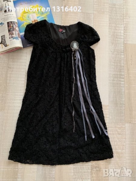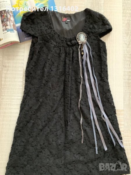 Симпатична къса Рокля ,черна ,с опционална брошка ,има подплата ,размерs ,sizes ,eur36 ,без забележки, дължина 80см.