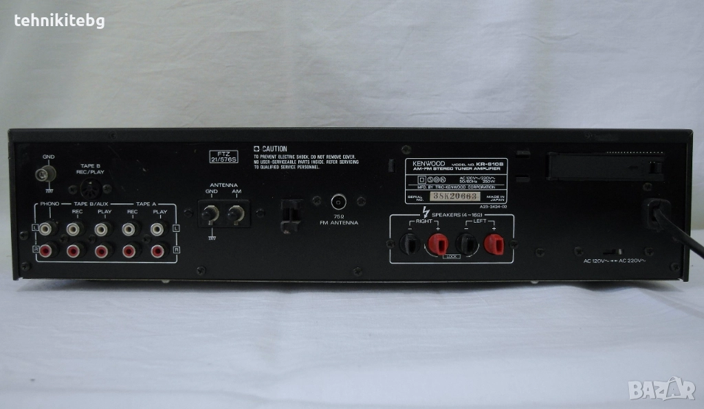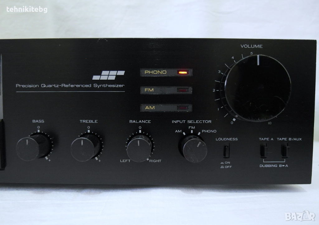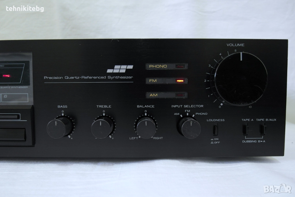 Хубав ретро ресивър от 1982 г. с 12 станции памет , 2 х 45/30 вата (4/8 ома) , BASS/TREBLE/BALANCE контрол , Loudness , кондензатори NIPPON CHEMI-CON 2х6800 uF , RCA входове : PHONO , TAPE A (REC/PLAY) , TAPE B/AUX (REC/PLAY) , тегло 5.8 кг. Ресивъра е рядко срещан и доста запазен за годините си , има леки козметични забележки , свири много приятно . Произведен в Япония . Цената му нов в Германия е била 550 марки . Лично внесен от Англия .