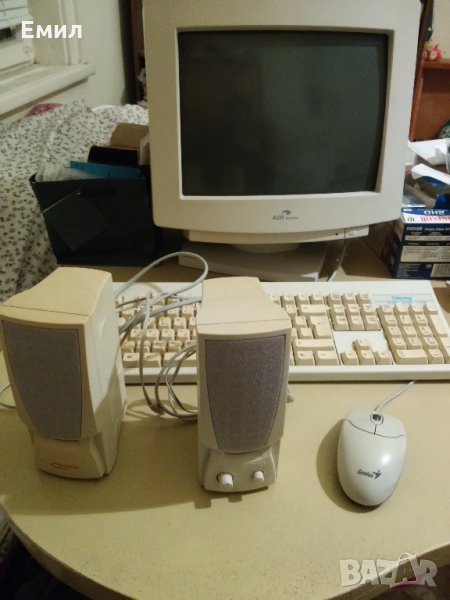 Продавам стационарен компютър с монитор, 2 тонколони, мишка и клавиатура. Има четец на дискове и дискети, записвачка за дискове.