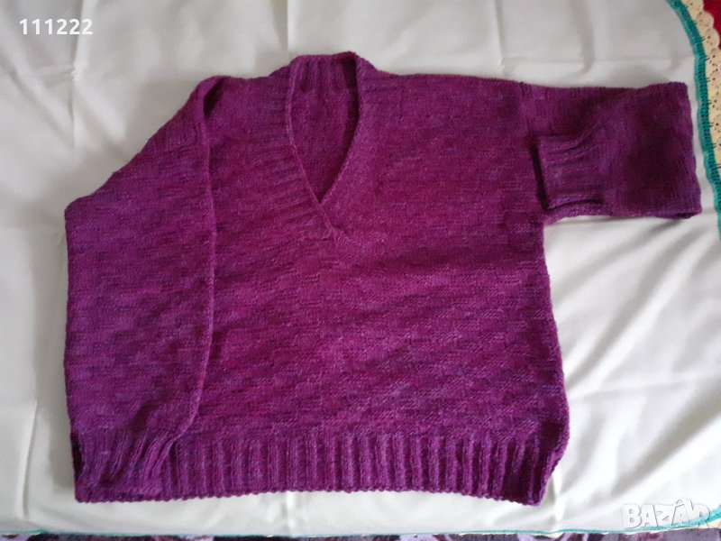 3. Красива ръчно плетена дамска блуза от много фина прежда с лодка деколте и "паднал" ръкав.