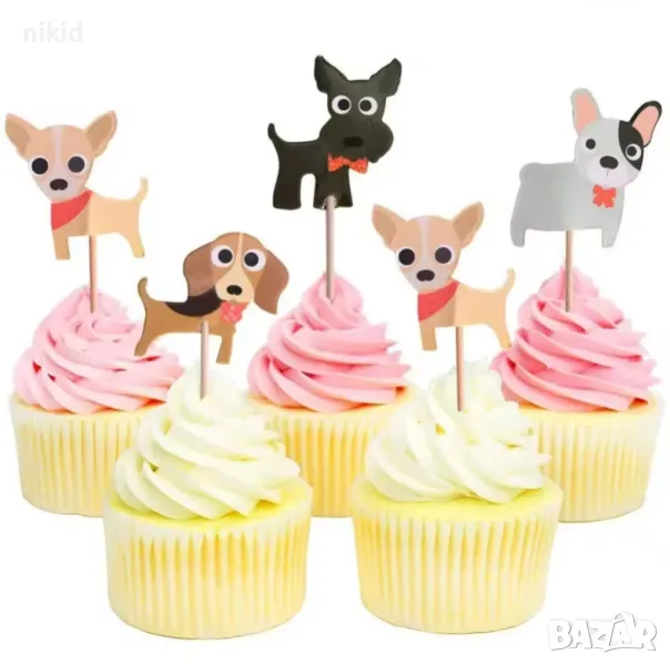 Кучета Кученца 24 бр топери клечки за мъфини кексчета парти украса декор → Обява 23874468