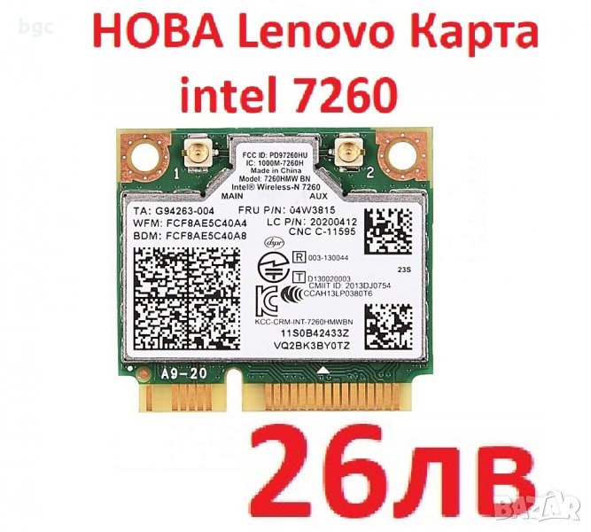 НОВА Wi-Fi Карта intel 7260NMW 7260NGW ЗА LENOVO Лаптопи FRU 04W3815 04X6011 и други