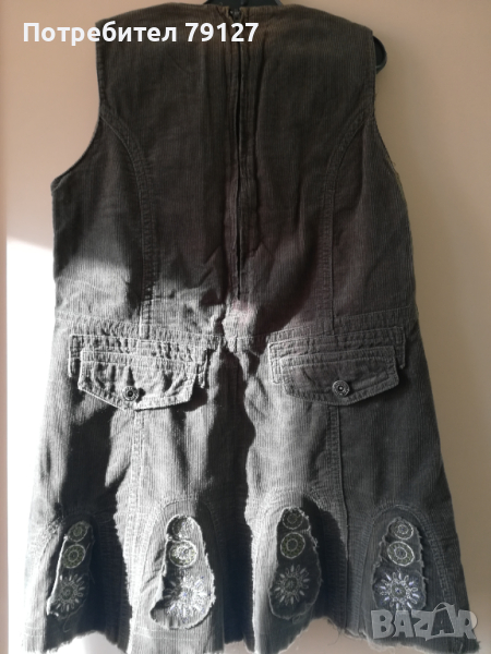 Джинсова рокля в зелен цвят. Закопчаването е отзад с цип. Има подплата. Подходяща за студените месеци. Производство е на висококачествена испанска марка. Много запазена-като нова.