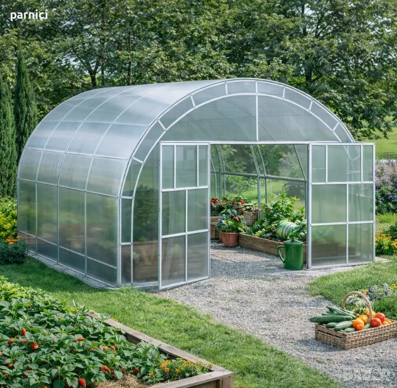 Primaterra Maxi е масивна оранжерия с двойни поцинковани профили, проектирана за дълготрайна устойчивост и висока защита на растенията. Подходяща за малки, средни и големи стопанства.