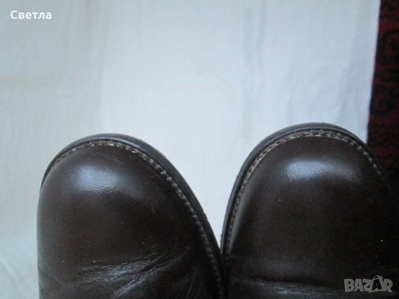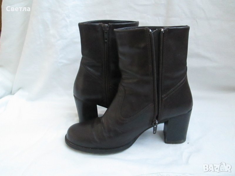 Ботички от естествена кожа и отвън и стелка. Височина на тока 6 см. Цвят-тъмно шоколадово кафяв. Ботите са оригинални, ползвани 5-6 пъти-като нови са, без никакви забележки. Мека кожа, стабилен ток, комфортни и удобни. Чудесна обувка и за ежедневието и за поводи.