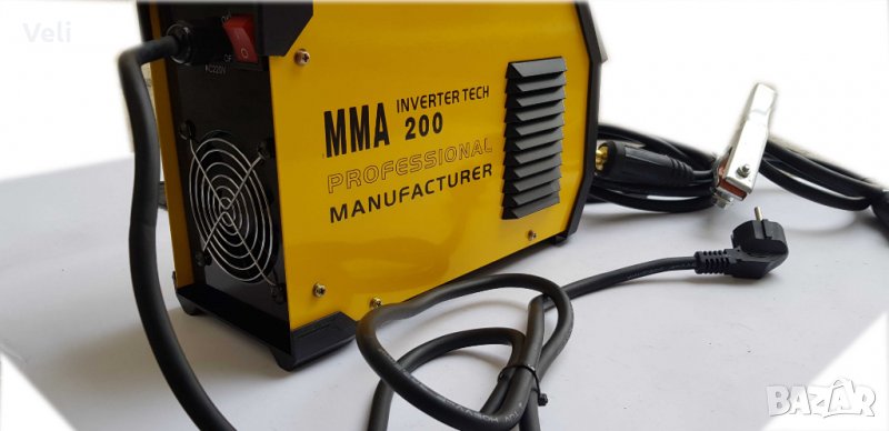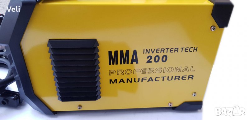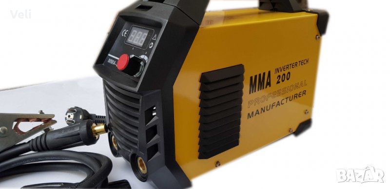 Инверторни електрожени MMA-200 MP. Електрожени с най-новата разработка на базата на IGBTтранзистори, предназначени за извършване на прецизни заваръчни дейности с всички видове електроди. Предимствата на тези електрожени са: Намалено импулсно натоварване на мрежата – за предприятия, които имат ограничение на мощността на електрическата мрежа прилагането на IGBT технологията позволява да се инсталират повече заваръчни постове. Заваряването не причинява смущения в мрежата – енергията, запасена в кондерзаторната група, изглажда падовете и пиковете по линията дори в момента на заваряване. Прецизен контрол на заваръчният ток- комутацията на напрежението се осъществява с IGBT транзистори. Те се включват и изключват с честота от 800 до 4000 пъти за секунда. За разлика от всички други заваръчни апарати, които се включват от заваръчното управление, но остават включени, докато мрежовото напрежение премине през ”0”, то при транзисторите се управлява както включването така и изключването, което позволява прецизно управление на заваръчния ток. Включването и изключването на транзисторите /за разлика от всички други заваръчни методи/ е управляемо и алгоритмите за управление на заваръчния процес са предсказуеми. Само времето, през което IGBT транзисторите са включени (ширината на импулса), определят енергията, която се подава към заваръчния апарат.Технически характеристики: