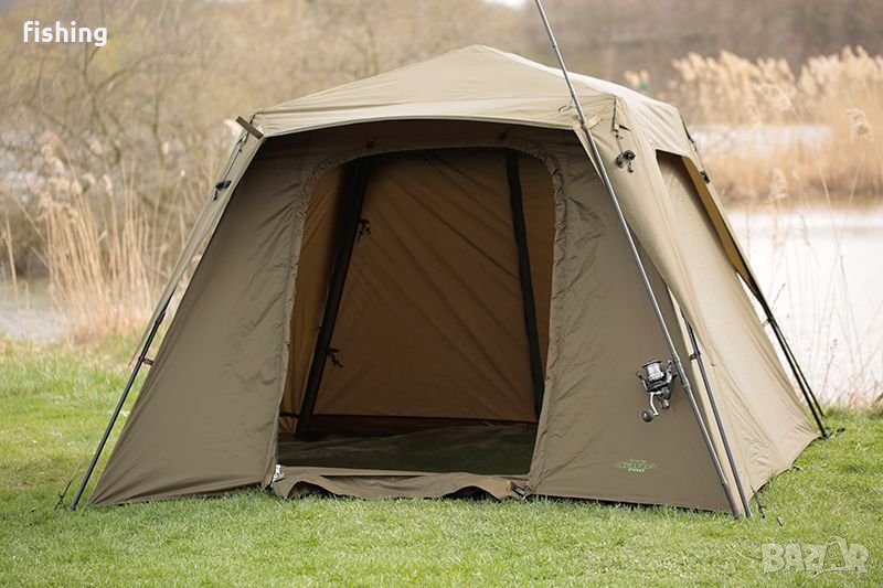 Палатката е предназначена за двама души и е изработена от най-висококачествени материали. Оборудвана е с мрежи против комари и комплект от елементи за закрепване. Размери: 250x250x170 см. (размери в долната част х височината). Устойчива е на дъжд (височината на водния стълб 5000 мм) и е опакована в здрава транспортна чанта. Изключително бърз монтаж и сглобяване. Тегло: 11 кг.