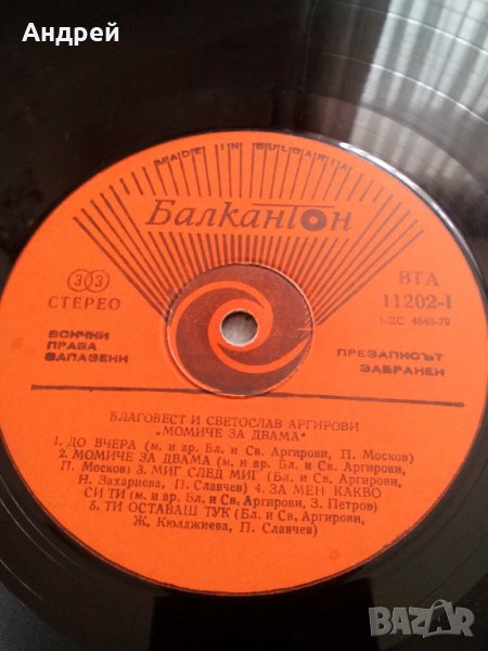 Грамофонна плоча Благовест и Светослав Аргирови → Обява 23916158